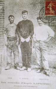 Le drame sanglant s’était déroulé dans le courant du mois de juillet 1907 à Viviez, près de Decazeville. Une pauvre fille, Angèle Lapierre, avait servi tour à tour de bête de somme et de chair fraîche à une bande de scélérats dont ressortaient les figures de Georges Aimone, chauffeur de profession et d’Antoine Emmanuelli, matelot égaré sur la terre aveyronnaise. Avec Pech Emile, Rieunier César et Alzamora, Antonio, ils avaient formé une bande redoutable spécialisée dans le vol. Jusqu’au jour où ils se retrouvèrent traduits devant un jury de Cour d’assises pour assassinat.